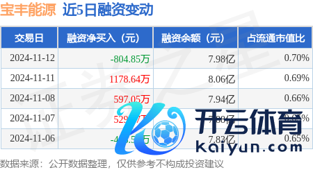 本站音信,11月12日,宝丰动力(600989)融资买入3730.77万元,融资偿还4535.62万元,融资净卖出804.85万元,融资余额7.98亿元,近20个交游日中有12个交游日出现融资净买入。