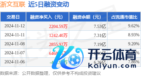 本站音信kaiyun官方网站,11月12日,浙文互联(600986)融资买入7740.1万元,融资偿还5535.5万元,融资净买入2204.59万元,融资余额7.53亿元,近3个往复日已纠合净买入累计6302.92万元,近20个往复日中有12个往复日出现融资净买入。