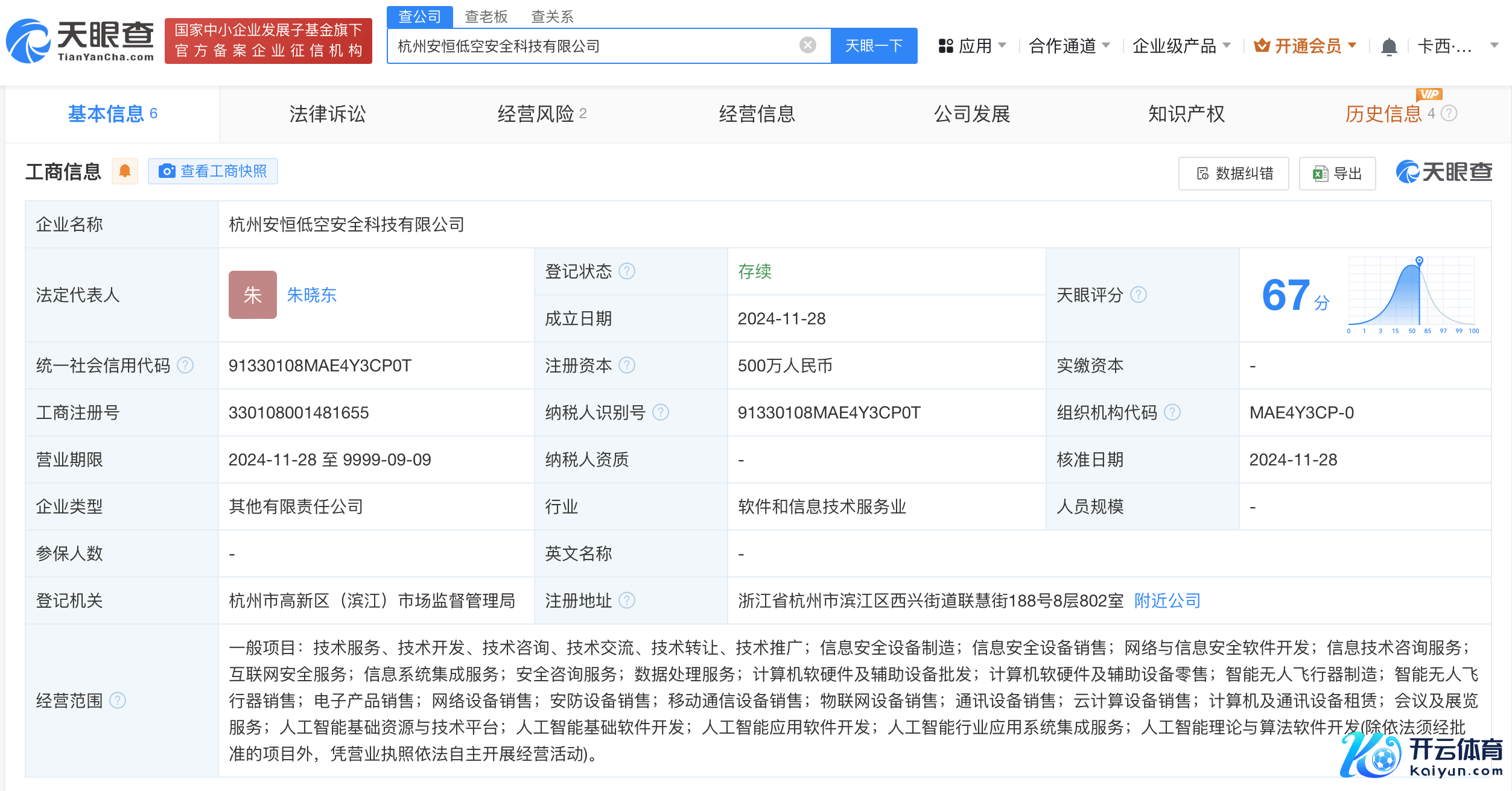 每经AI快讯,天眼查App裸露,近日,杭州安恒低空安全科技有限公司诞生,法定代表东说念主为朱晓东,注册成本500万东说念主民币,主义畛域含智能无东说念主飞翔器制造、智能无东说念主飞翔器销售、东说念主工智能基础资源与时刻平台、东说念主工智能基础软件征战等。鼓吹信息裸露,该公司由安恒信息(688023)、凡双科技(874657)辨认合手股60%、40%。