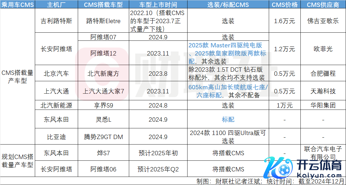 从各方反应来看,咫尺CMS一个比拟凸起的痛点等于资本偏高。财联社记者了解到,咫尺各品牌车选装CMS的价钱从5000元到1.6万元不等。