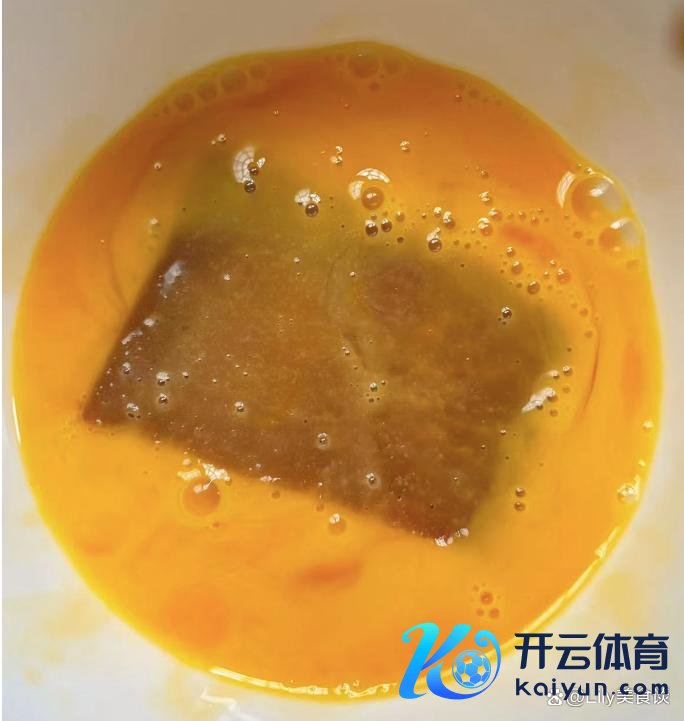 3、准备适量的鸡蛋液,把准备好的年糕裹上一层鸡蛋液。