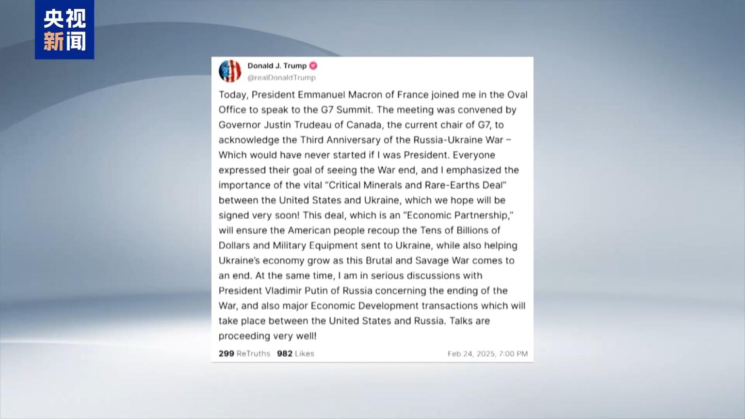 好意思国总统特朗普24日示意,可能在数周内截止俄乌突破。他正在与俄罗斯总统普京就截止俄乌突破以及好意思俄经济发展合营进行商榷,沟通证据奏凯。特朗普本日称,俄罗斯有好意思国需要的资源,比如稀土,好意思国正竭力与俄罗斯合营促进经济发展,他愿在适合的工夫看望俄罗斯。