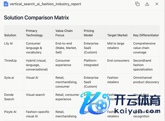 Manus 深远参议整理了服装行业的 AI 搜索产物,并进行防范的产物分析