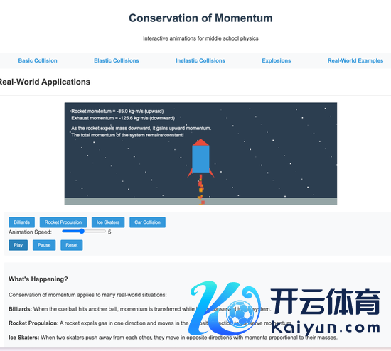 我是又名中学物理老师,正准备教悔动量守恒定律。您能否创建一系列显着准确的演示动画,并将它们整理成一个通俗的 HTML 演示文稿?