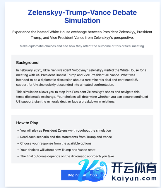 Manus 为你定制个性化的小游戏。来试试泽连斯基白宫论争模拟器
